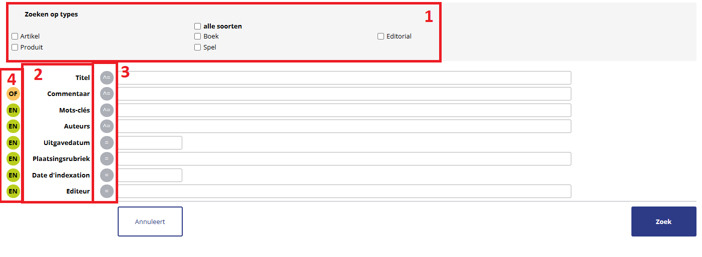 Terwijl de eenvoudige zoekactie alle gegevens in de records doorzoekt, kunt u met de geavanceerde zoekactie de zoekvelden doelgericht instellen.